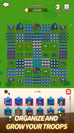 使用游戏币招募动物大军,并结合它们来增强你在战斗中的力量。