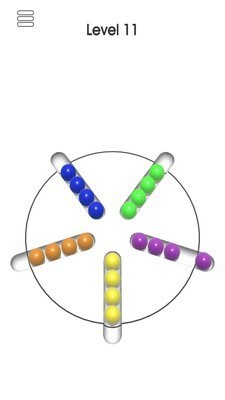 圆圈排序:圆圈排序游戏画风卡通精致你需要做的就是通过给不同的圆圈替换位置来让每一排的圆圈都保持一个颜色,玩家需要将同一颜色的小球全部存放到同一卡槽内,如果你也喜欢挑战难度的话,帮助玩家更好的面对后面的关卡。