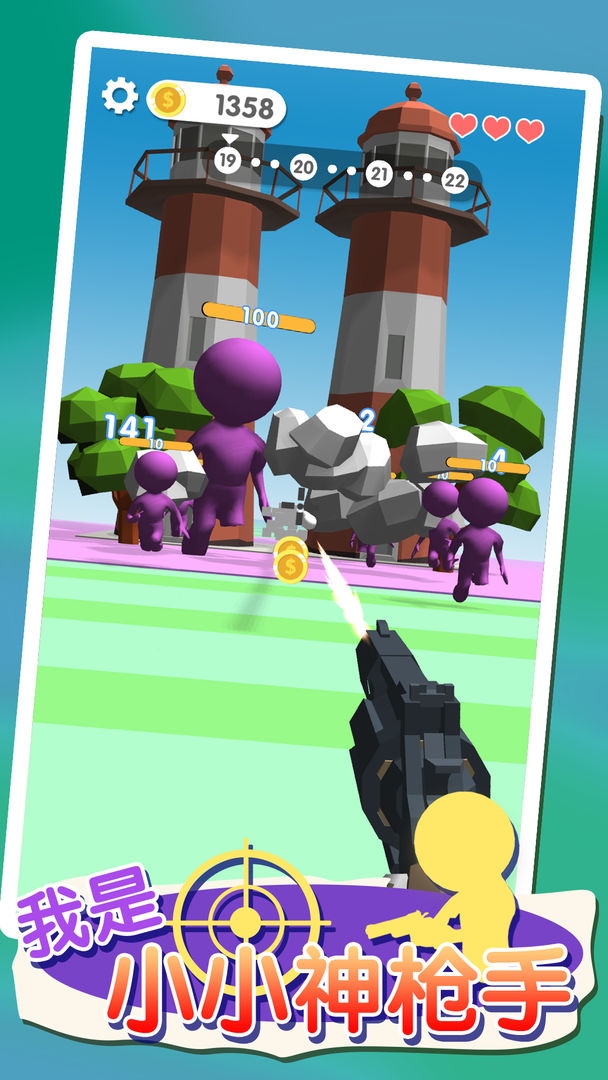 我是小小神枪手是一款休闲射击闯关类游戏,在游戏中扮演一名神枪手,打败你面前的一切敌人,你能够使用各种枪械,不仅仅只是AK,更有内格夫、黄金左轮等等枪械使用。