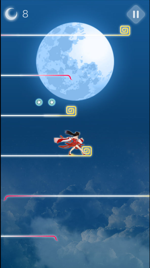 月光阶梯是一款唯美国风跳跃类游戏,在游戏中操控嫦娥,不断往上跳跃,尝试着去触碰月球,游戏非常有趣,画面唯美,玩家能够依靠自己的技术,不断往上,获得更高的分数。