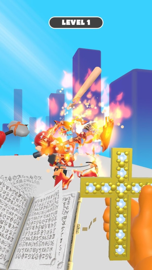消灭恶魔是一款动作闯关游戏你都可以开始这场欢乐的对决,释放酷炫的技能,使用手中的圣经和十字架消灭路途上的恶魔,你也可以灵活的利用周围的道具。
