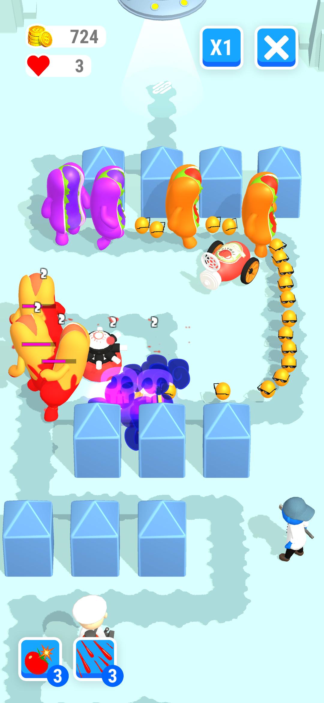 热狗塔防Hot Dog TD是一款益智策略塔防类游戏,热狗造型的防御塔,魔性的玩法让人爆笑不止,积累金币购买新的防御塔,把所有靠近城堡的敌人用防御塔消灭,直到消灭最后的敌人为止。
