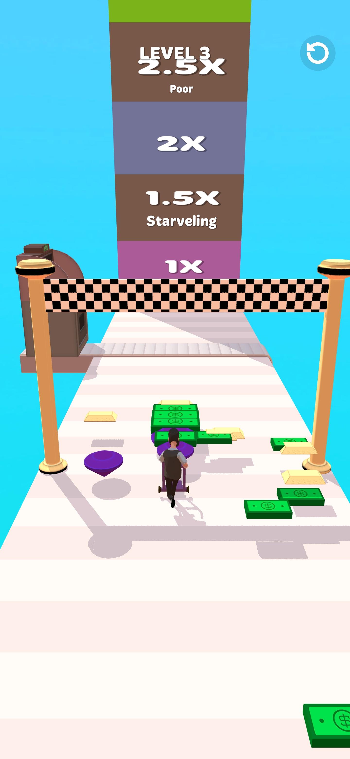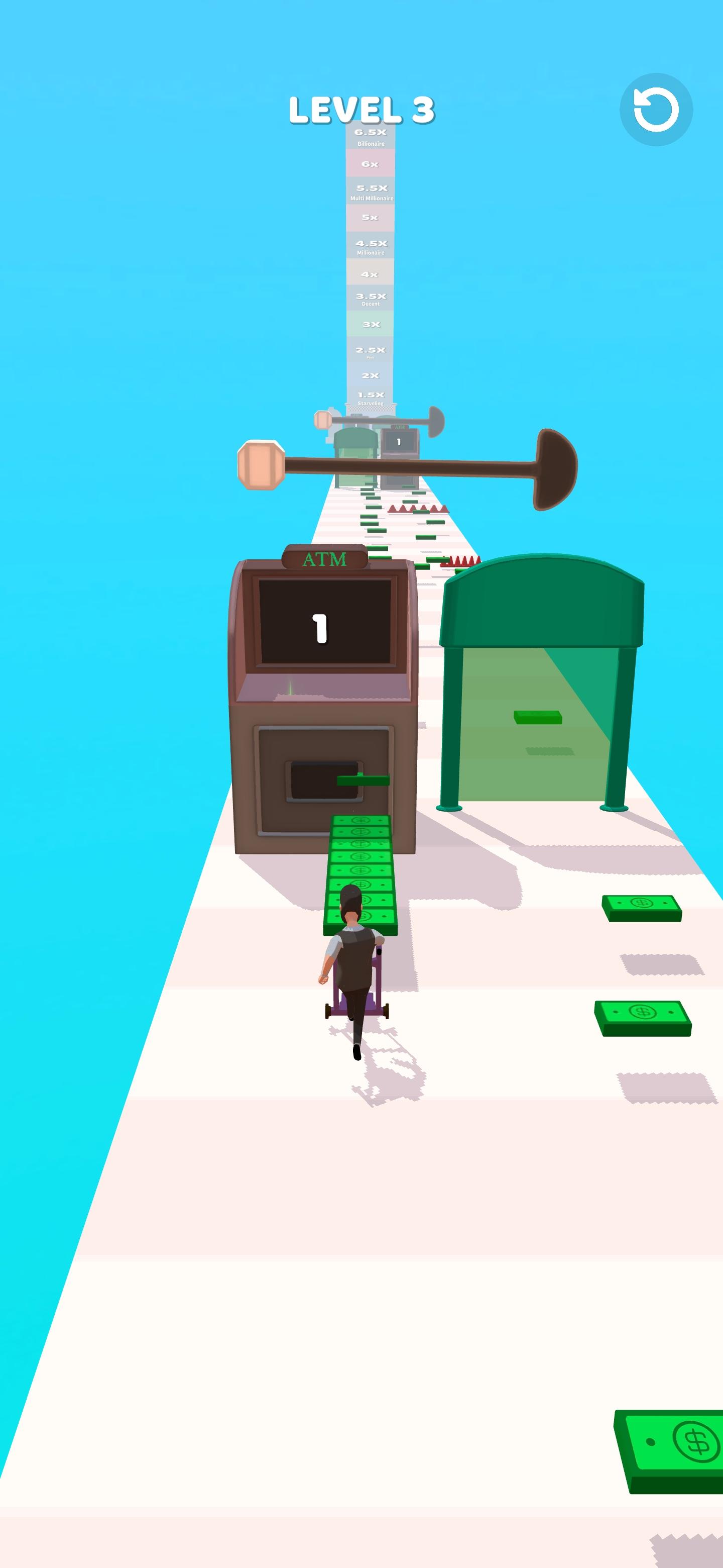 金钱冲刺Money Rush是一款趣味挑战跑酷类游戏,在路上收集散落的金钱,一边跑一边成为百万富翁,带着金钱去终点,在路上会遇到一些机器和们,选择合适的一种转换金钱。