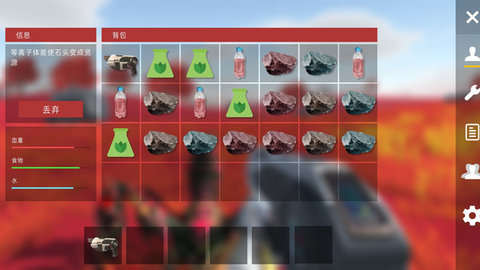 在这里找到赖以生存的水源和食物,还要防御各种未知怪物的袭击,保护自己。