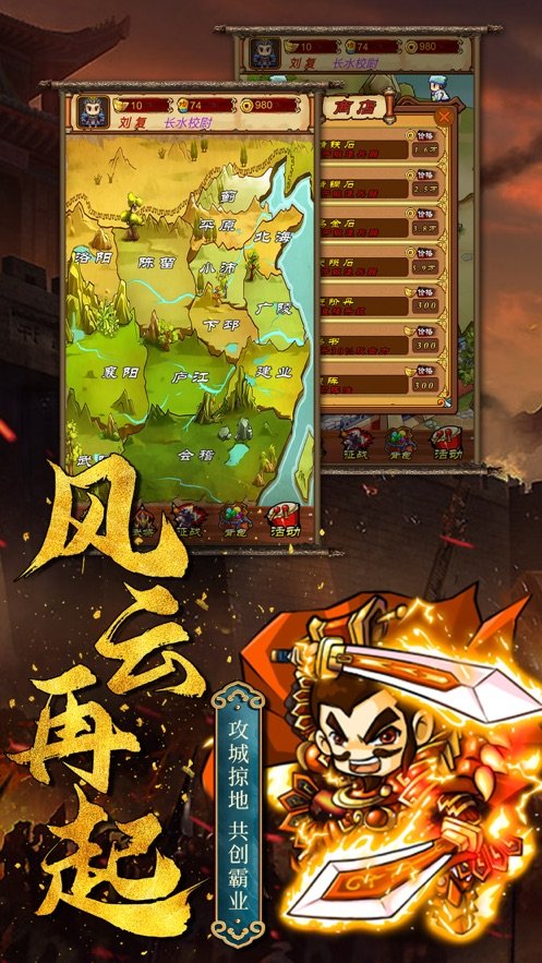 乱世英雄豪杰辈出,各种武将自由的招募,自由的培养升级,打造你的最完美的阵容。