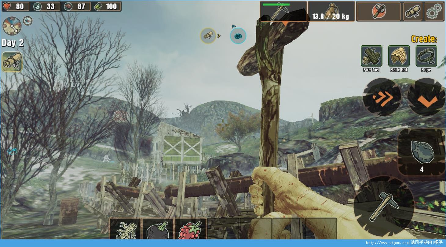 4、需要去打猎,收集物资,建设仓储和收容所。您将能够创建工具,衣服和设备。
