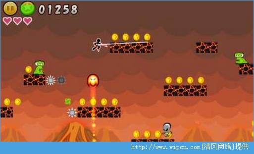 1、玩家将操纵火柴人通过钢索来移动,玩家要一边闪避敌人的攻击一边前进,一路收集金币,最后打倒在关卡的BOSS;