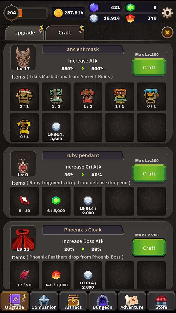 一款放置类游戏,收集强大的神器和装备。