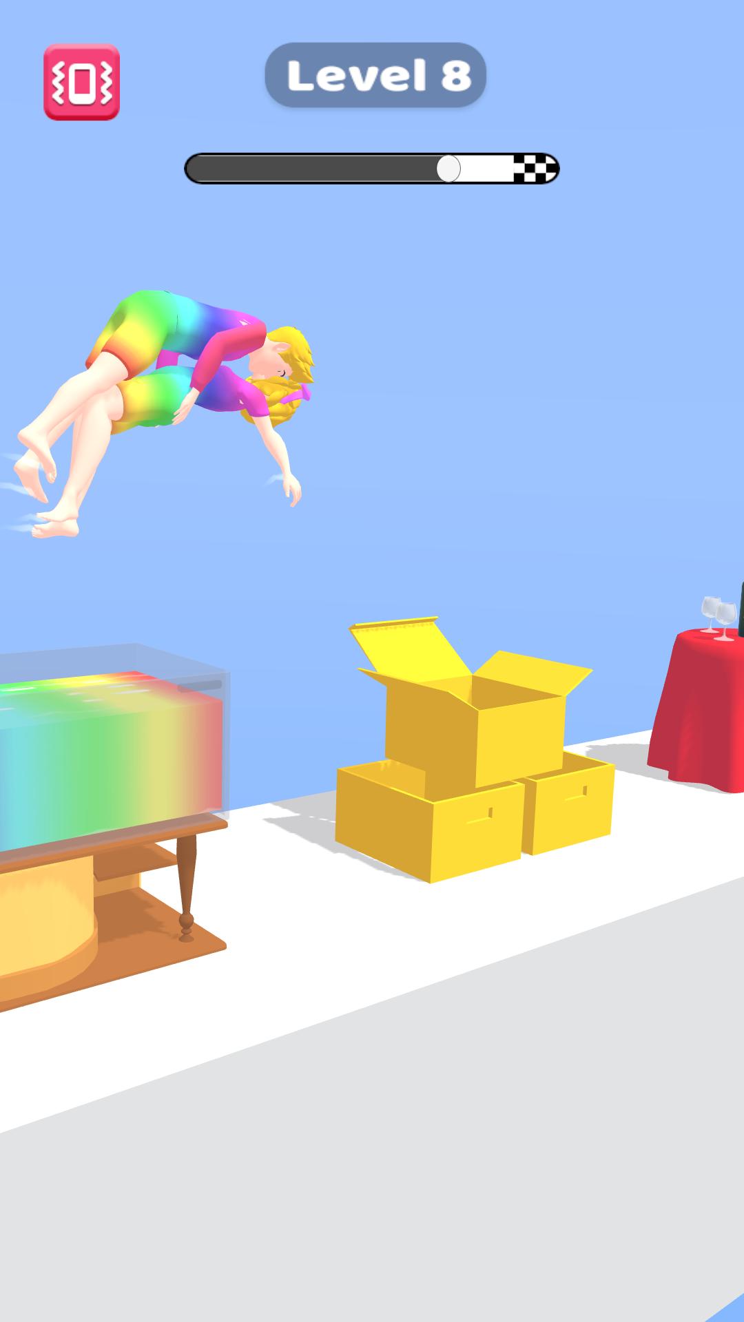 情侣翻转Couple Flip是一款魔性搞笑翻转跑酷游戏,一起参与情侣跑酷,两个人一边拥抱一边调整跳跃的方向和距离,在危险的场景中顺利着陆又再次起跳,把陷阱和危险都抛在身后。