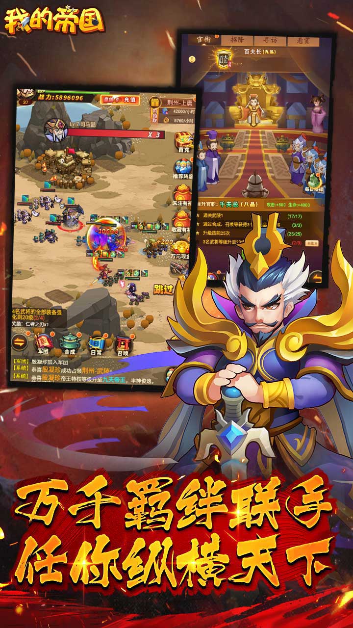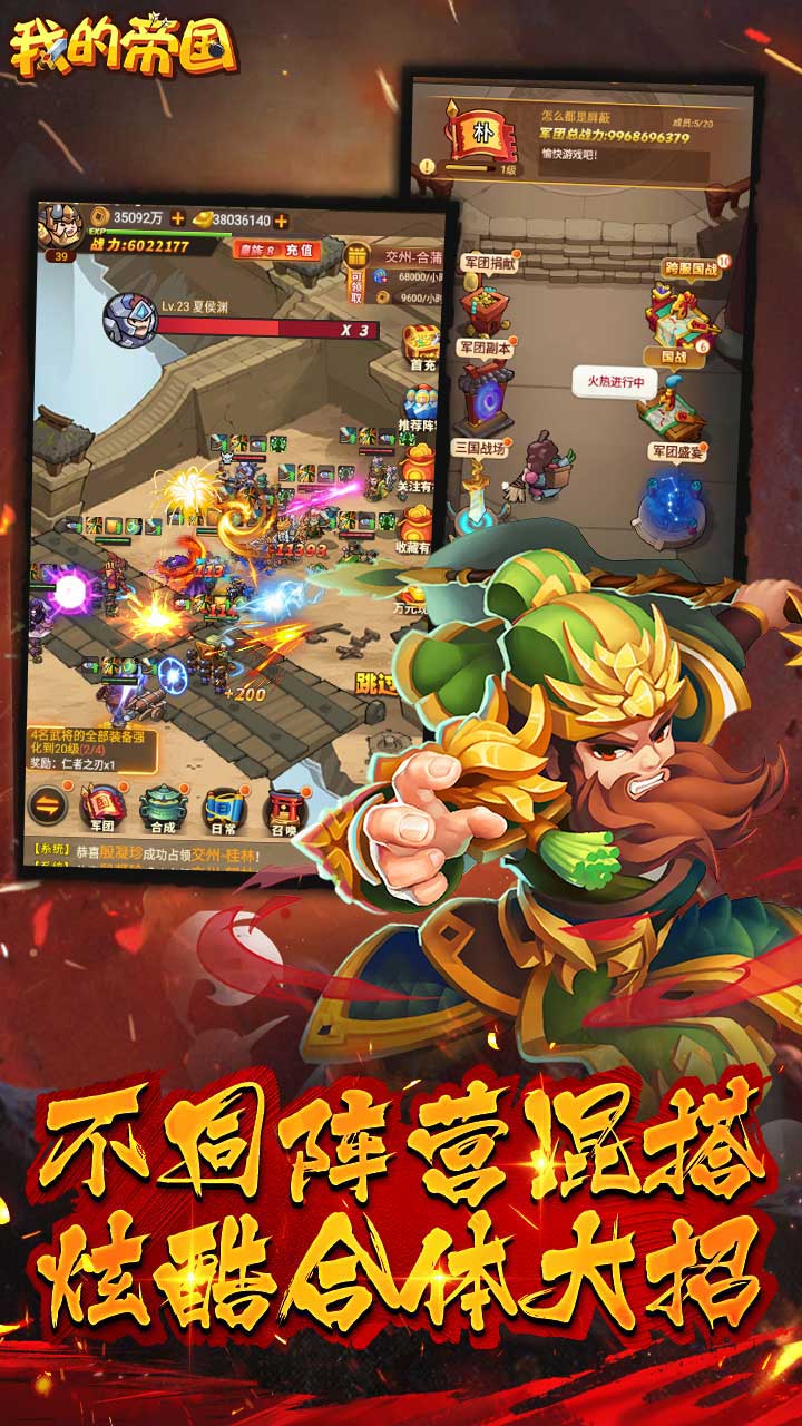 我的帝国官网版是一款三国策略卡牌类游戏,在游戏中招募三国名将,和这些名将一起,征战四方,平定三国乱世,玩家在游戏中能够体验到不一样的三国游戏,喜欢的玩家快来体验吧。