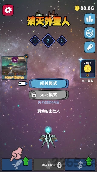 3、同样的方法,只需按住并拖动手指即可瞄准外星人的攻击。