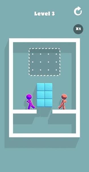 1、在绘制区域中画出相应的方块,以帮助夫妻两人填住大坑,最终走到一起。
