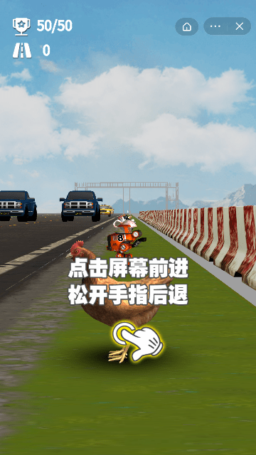 3.通过游戏宇宙丰富的跑酷赛道,帮助小鸡冒险便捷的进行对战完成过马路。