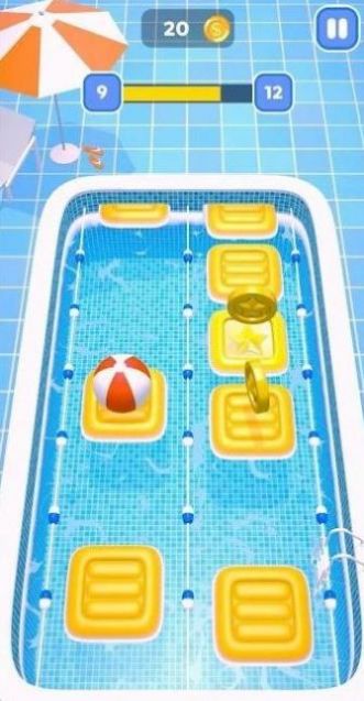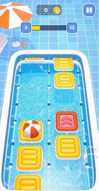 1、通过点击屏幕的方式控制排球左右跳动,在不跳进泳池的情况下完成关卡。