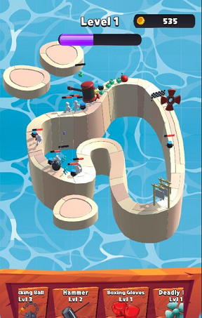 1、使用金币购买或升级陷阱,将它们安放在跑道上,阻止前进的人。