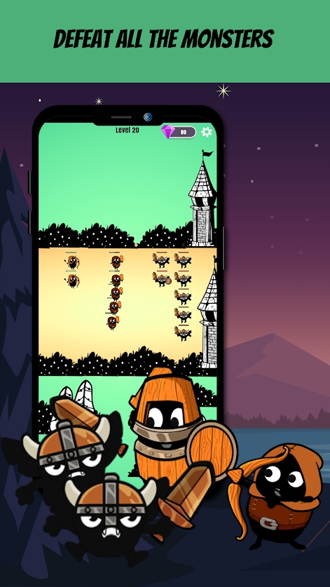 2、以打造自己的强大军队并击败专门伤害人民的怪物。