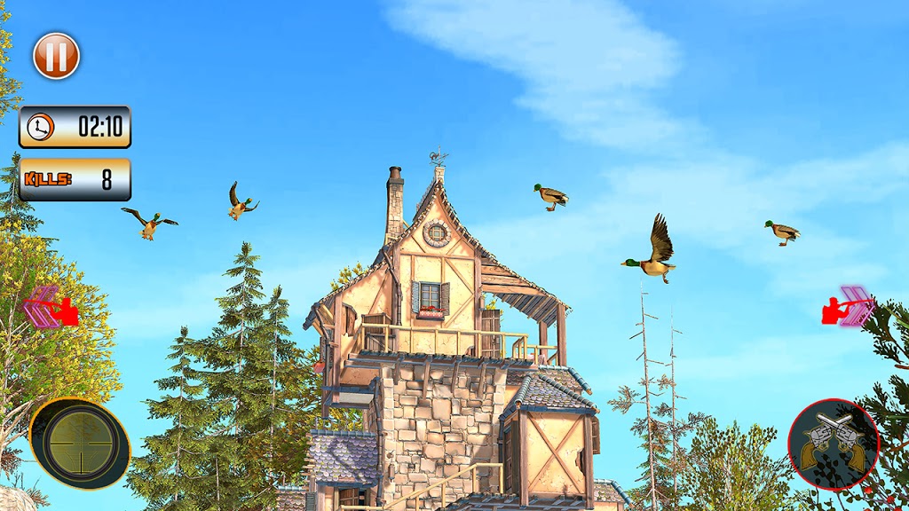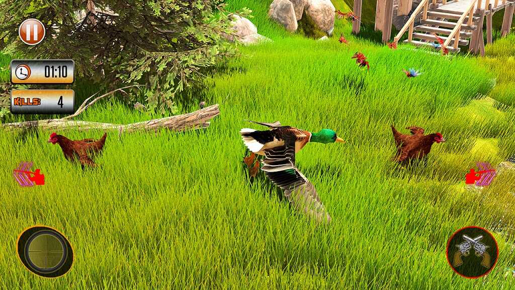 2、玩家可以在游戏中自由使用武器完成狩猎,所有的目标都会出现在你的眼前,使用你强大的射击能力击落每只鸭子。