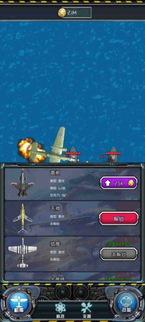 2:你需要快速的进行走位来躲避攻击。通过完成不同的关卡获得奖励,解锁更多飞机。