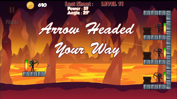 1、调整射击角度,定位方向,并向一排弓箭发射,击败敌人,你每一次射击的敌人越多,你会得到的分数越高。