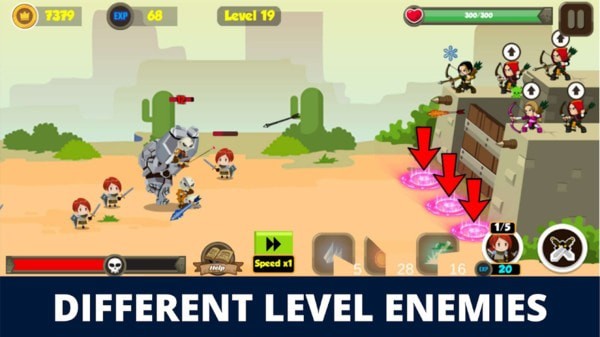 游戏中弓箭的选择性很多,不同品质的长弓或者短弓都能让玩家去作出选择,进攻敌人的城堡,轻易击杀更多的首位为你的军队缓解更多的压力。