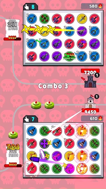 3、玩 3 场比赛拼图并强力攻击盾牌军队并使用特殊技能,随机选择 40 多种能力