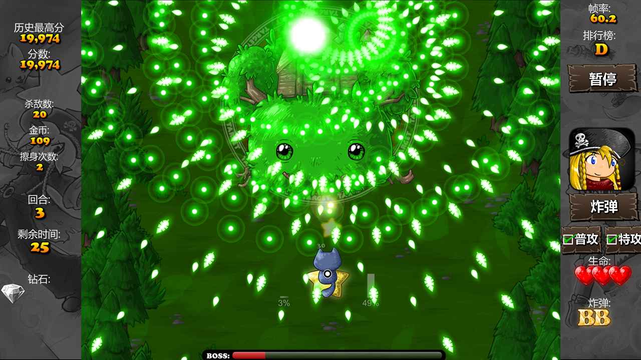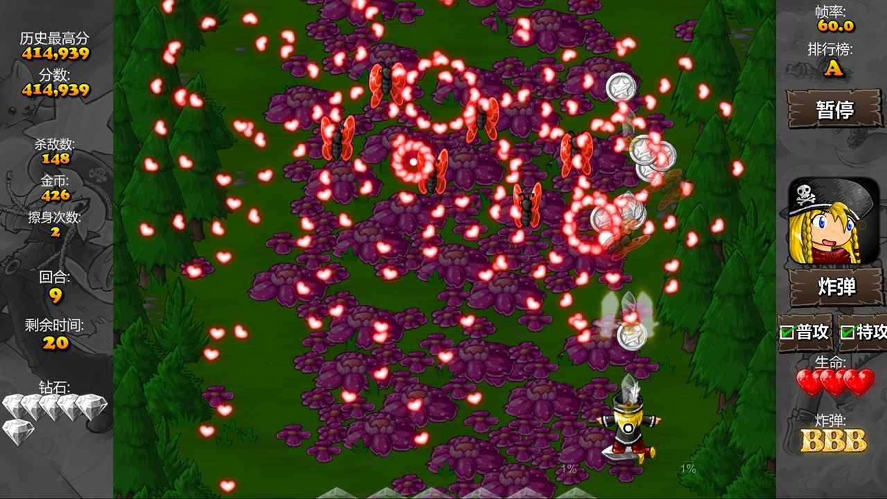避免子弹杀死敌人,就像在典型的弹幕游戏中一样。