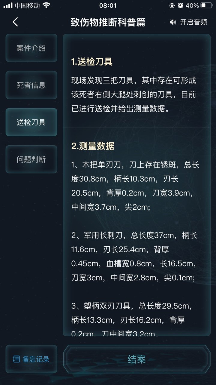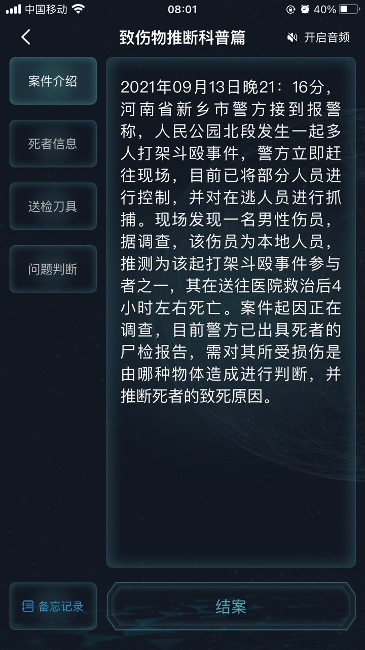 8犯罪大师致伤物推断科普篇这款游戏采用了烧脑的解谜案件查清楚案件背后究竟隐藏着什么,才是你作为侦探应该做的事情,还可以为受害者还原真相,玩家可以化身侦探去开启解谜之旅。