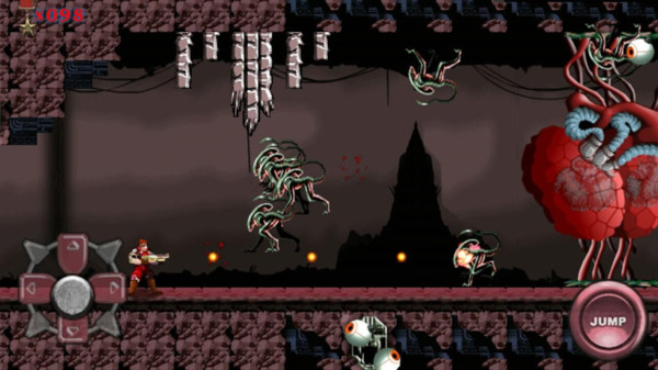 玩家可以跳跃并在跳跃时使用方向键来控制移动和射击时的方向,而且跳跃时候的方向控制在游戏当中十分重要。