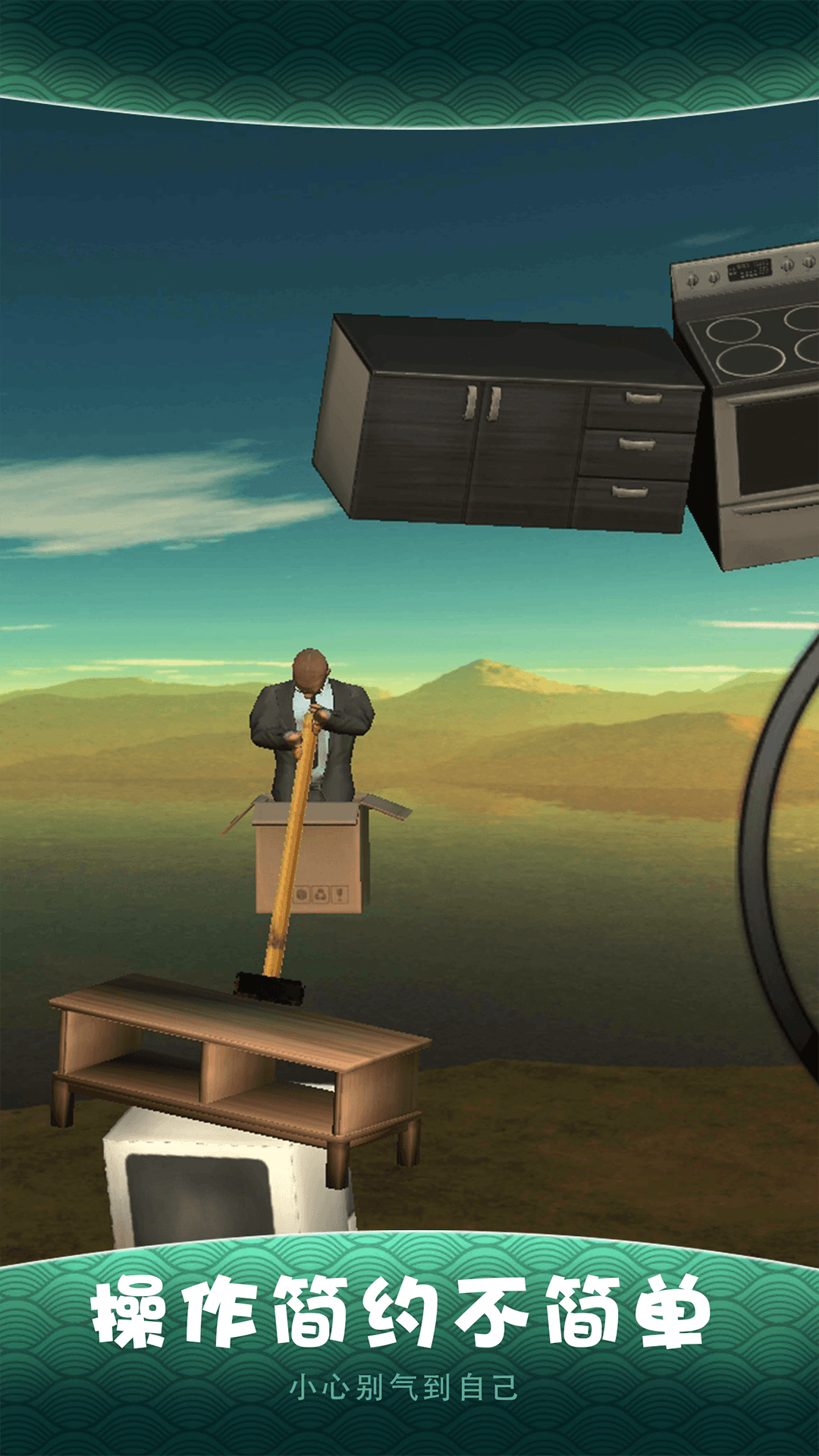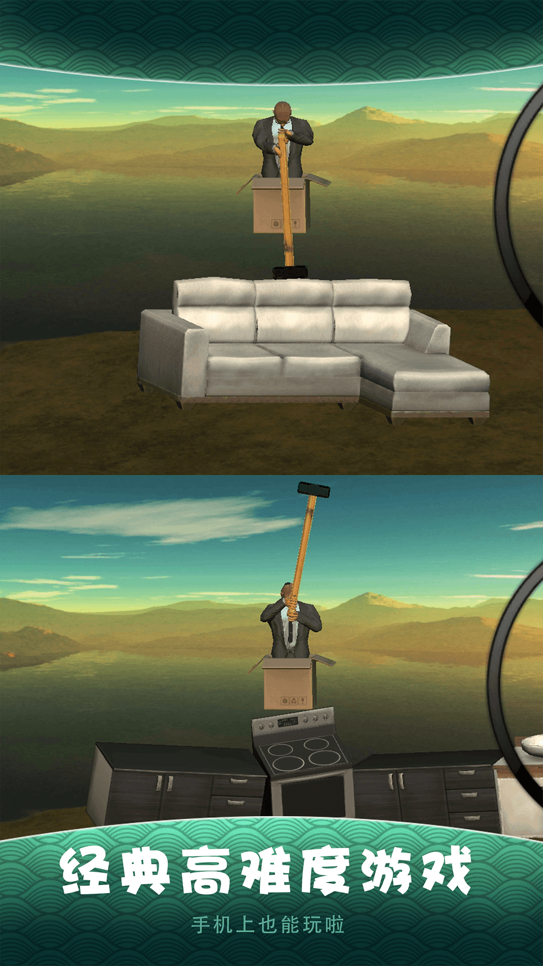 玩家控制一个坐在似乎是缸里的人,用一把榔头不断往上爬,操作极其简单;