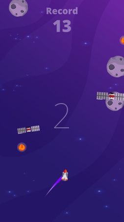 太空上有许多的陨石和卫星,玩家需要操控你的火箭躲避这些飞行物。