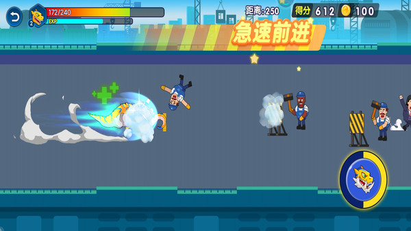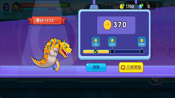 小怪兽需要一边跑一边战斗,进化以后就能直接使用技能把障碍物和敌人撞飞。