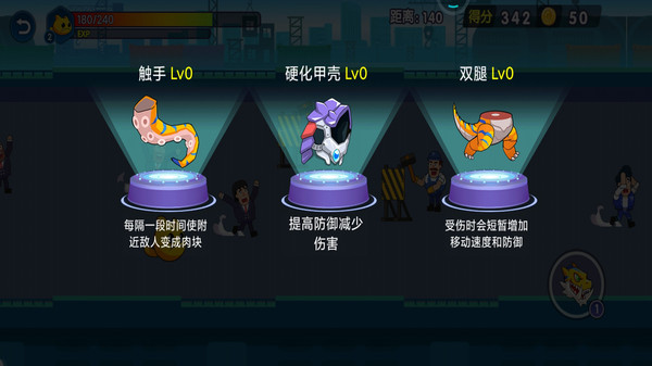 怪兽变异跑是一款卡通趣味跑酷类游戏,小怪物们一开始很弱小,在通过一些关卡或者检查点时可以选择变异的方向,有攻击、防御、移速等,玩家们能根据目前的状况加强对应的技能。