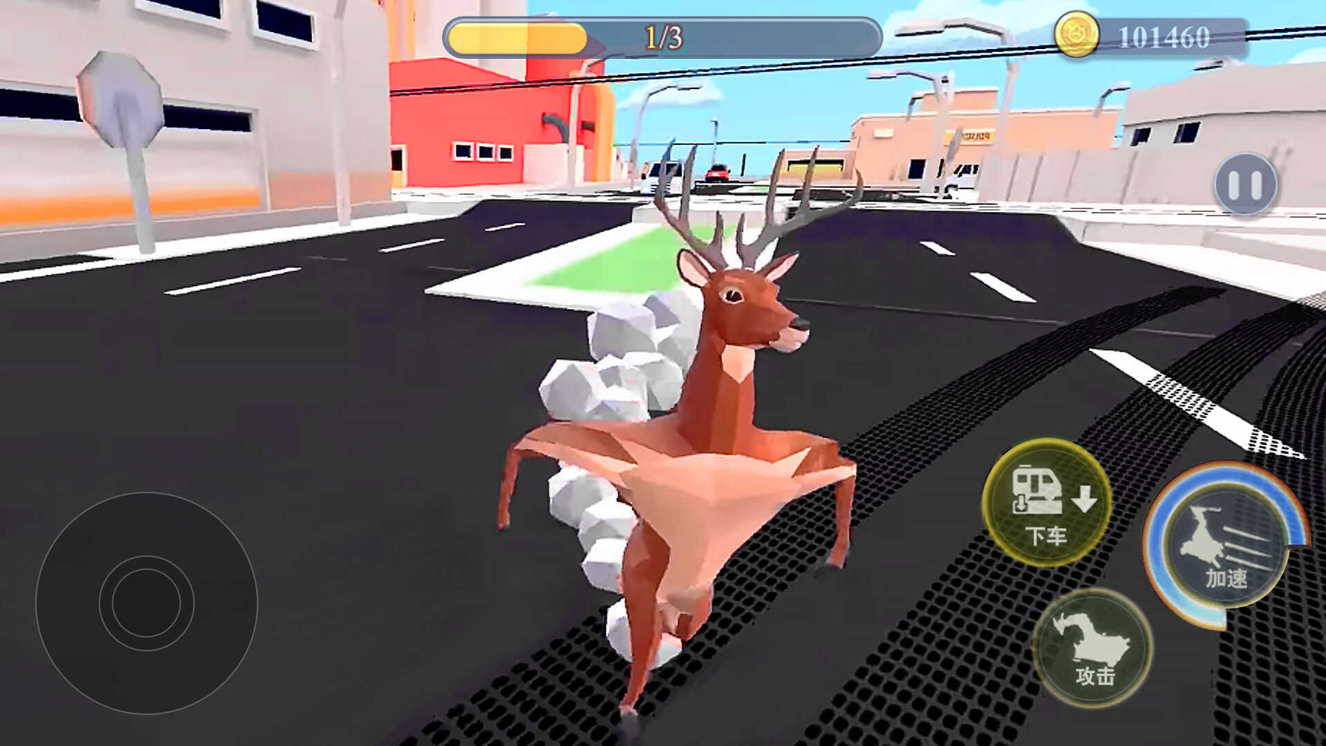 3、呆萌的小鹿在城市之间玩耍,肆意的进行破坏,无法无天的前行。
