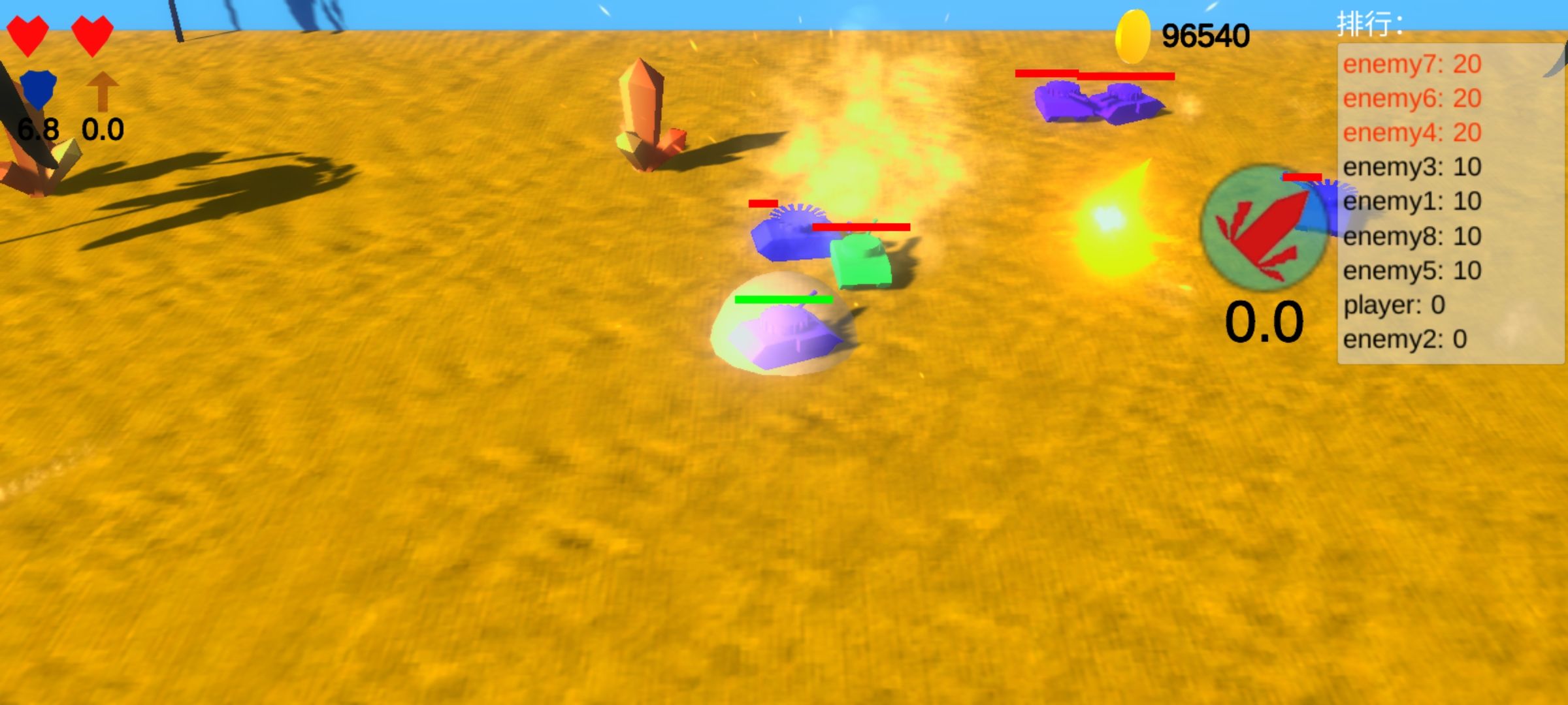 在坦克战中瞄准坦克炮,攻击敌人以获得所有坦克星,与机器人和汽车战斗。