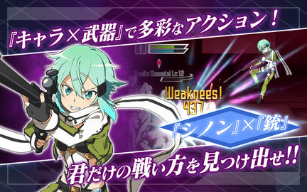 本作是《刀剑神域》系列在手机平台的首款 2D 动作手游,战斗中玩家可以进行攻击、释放技能、交替、格档、跳跃等动作,而且原作中出现过的武器比如二刀流、单手剑、枪都会在本作中登场。