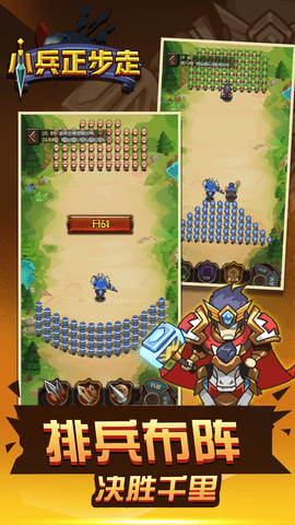 小兵正步走,一款轻松爽快的策略游戏, 创新的指尖划兵点将操作,3秒开战,1分钟攻城!游戏里,玩家将扮演优秀的指挥官,排兵布将,在激烈的战场中利用各个单位功能和长处,抵挡住敌方的进攻,并进行反击!