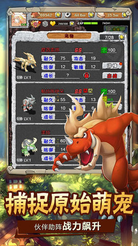这里就是石器正版授权RPG手游《顽石英雄》,回合制战斗和宠物骑乘玩法,庄园争夺战、斗技场、生存考验等对战方式,水田迷宫、阎罗调整、百人道场等十余种有趣的玩法。