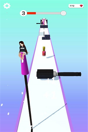 睫毛笔快跑是一款休闲趣味闯关类的手机游戏。睫毛笔快跑玩家所操作的女性角色乘坐在睫毛笔上,玩家通过滑动屏幕控制玩家的位置,尽可能的避开的障碍物的同时收集更多的化妆品。