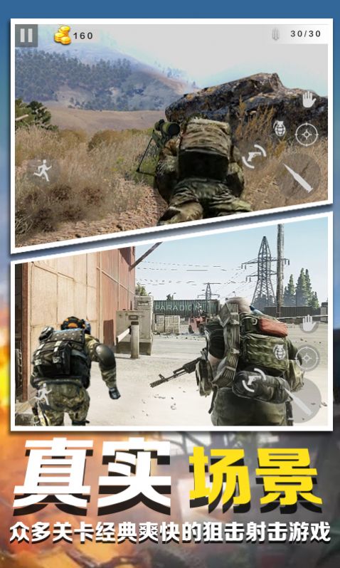 1.玩家的身份是优秀的狙击手。画风更加写实,包含一系列挑战