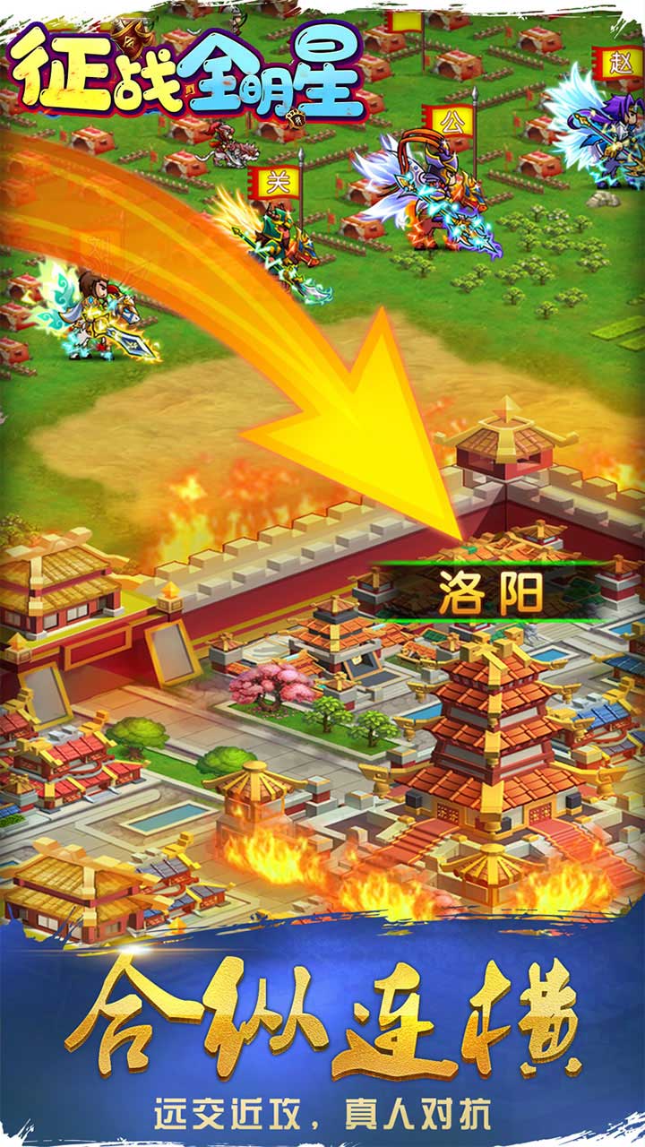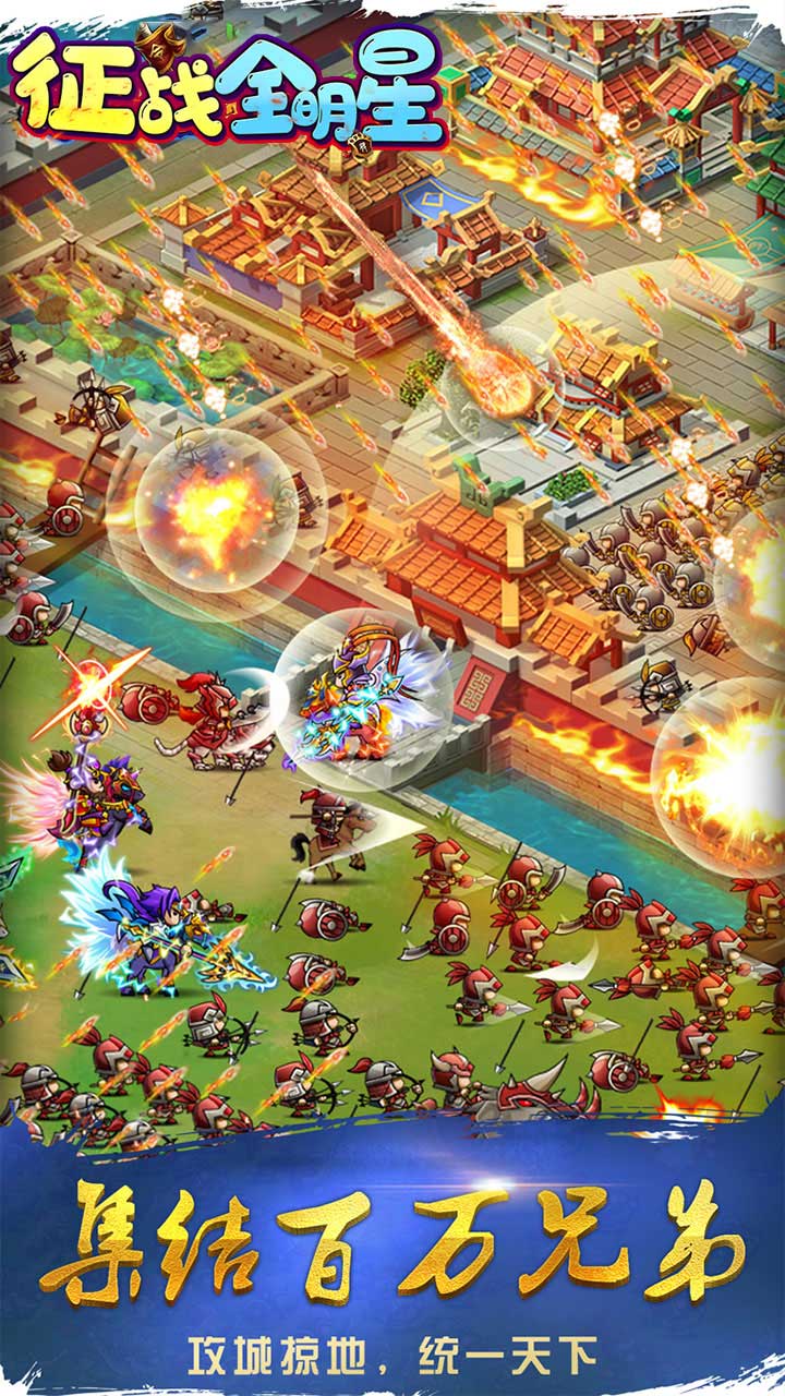 征战全明星是一款三国沙盒战争策略游戏,玩家在游戏中能够看到众多Q版形象的三国名将,招募各种名将,组建不同的军队,使用不同的策略,攻打城池,占领更多的领土,快来尝试。