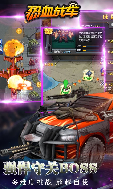 热血战车根据真实数据等比例还原,每个关卡内均有守关Boss,丰富的游戏内容畅玩不停,喜欢的话就赶紧来下载吧。