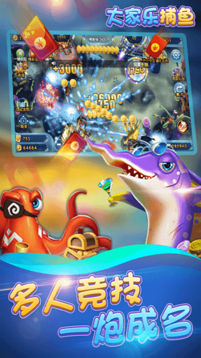 大家乐捕鱼红包版可以真人竞技和刺激对战,还可以领取高福利。是一款多人互动的捕鱼游戏你还可以在这里参加各种活动,多款新型道具,还有各种豪礼可以拿,让你尽情的娱乐,超多精彩的游戏将会给玩家带来最全新的游戏感受。