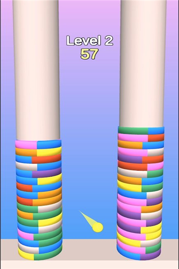 球撞彩环是一款休闲趣味娱乐类的手机游戏。球撞彩环中玩家通过发射小球不断撞击圆柱中带有五颜六色的彩环,玩家需要根据彩环的颜色及时变换小球的颜色,调整发射的角度,尽可能击中更多的彩环。
