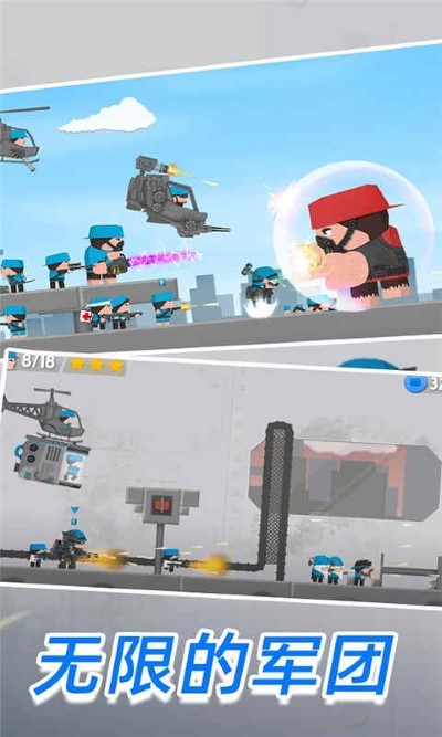 解锁更多的士兵和一个多不同的武器道具,潜伏放置招募的对抗射击。