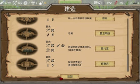 最后的蚂蚁汉化版是一款回合制地牢建设游戏。在游戏中玩家将以蚂蚁的微观视角来观看这个世界,游戏内容非常丰富,派遣兵蚁战斗,玩家需要利用这几只蚂蚁来扩大自己的蚂蚁王国。