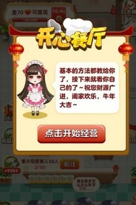开心餐厅红包版真的可以赚钱可以提现吗打造出专属的餐厅,通过制作美食来扩大经营的规模,游戏将时间背景设置了古代,喜欢的玩家快来下载开心餐厅红包版。