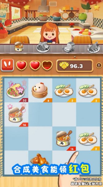 1.用户可以在摊位游戏中模拟经营一家餐厅,通过合成来升级食物,解锁大量的红包奖励并创建自己的餐饮连锁品牌.