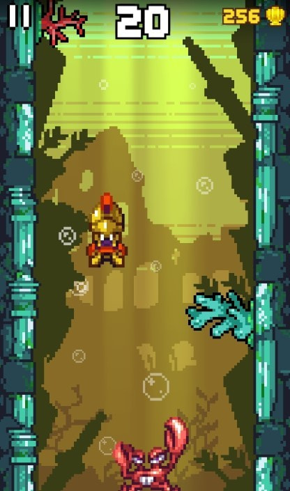 是一款像素风的休闲闯关游戏,故事的主角是一只萌萌的小乌贼,游戏的主要玩法就是不断向上有用前进,但是要及时的左右移动以避开各种障碍物,玩法简单有趣非常适合休闲游玩,还有各种皮肤都是可以随意使用的。