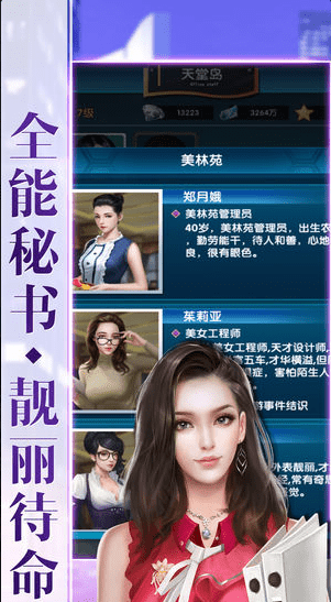 秘书成长记是一款商业成长手机游戏在不断的经营成长的过程中还能邂逅总裁,展开不一样的剧情,玩家们可以自由的去进行设计和建设,养成多个商业好伙伴,随时来月不同的美少女进行互动交流;。