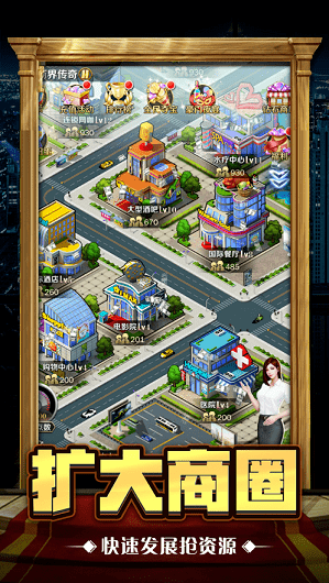 点击扩大商场和店铺可以赚取更多的金钱,成为首富大亨。